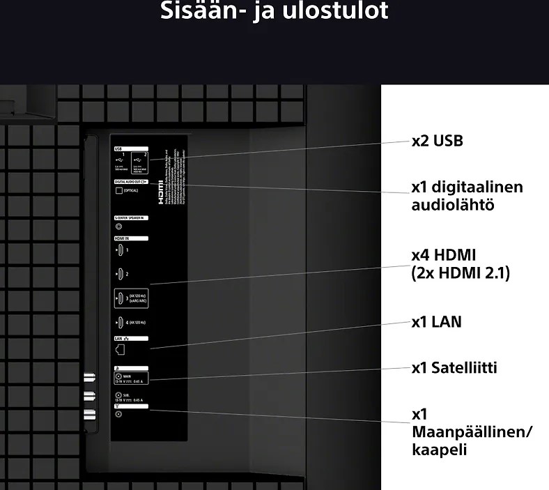 2 x HDMI 2.1, 2 x HDMI 2.0, 2 x USB, цифровое аудио, Ethernet