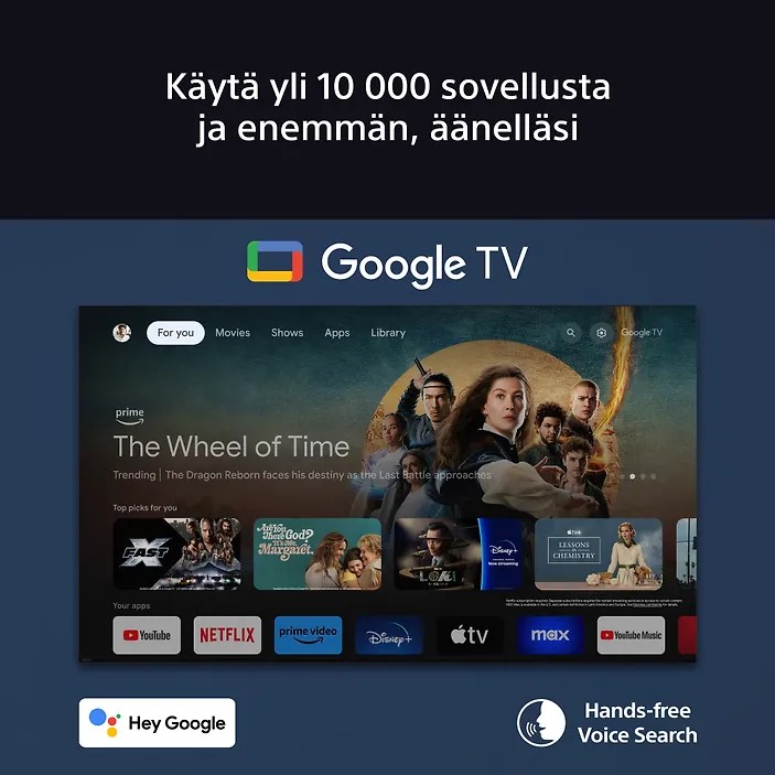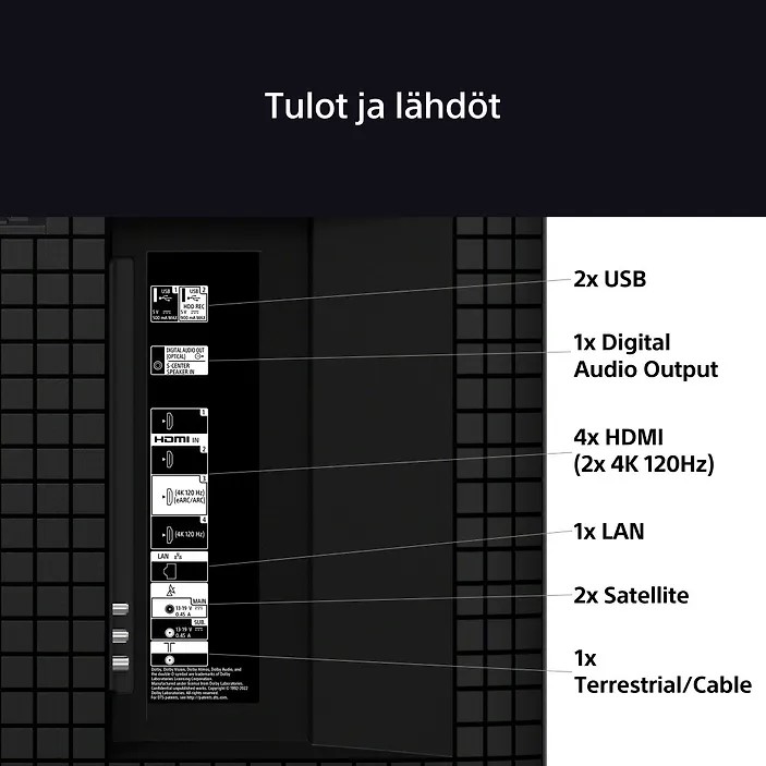 Netflix, YouTube, Yle Arena, Screen, mtv, Viaplay, Spotify Music, CMore, Amazon Prime Video, Google Play Фильмы, SF Anytime, Blockbuster, Deezer, HBO Max, Disney+, Crunchyroll, Bravia Core